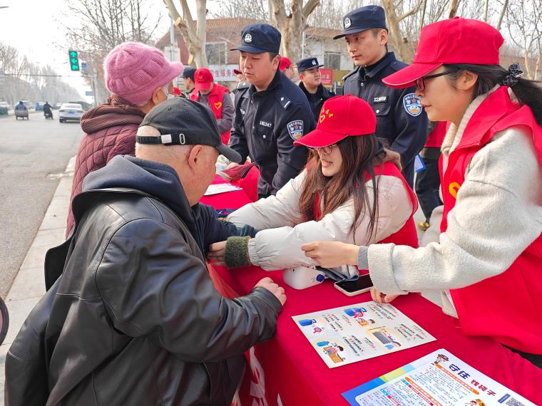 活动现场,这支以00后为主力的青年志愿服务队早早搭建好便民服务点位,设置了健康便民、普法宣传、反诈守护三大服务专区,吸引大批居民参与。健康便民区里,志愿者耐心为居民测量血压,细致询问身体状况,针对老年居民关心的高血压防护、慢病管理等问题答疑解惑,叮嘱大家养成健康生活习惯。普法与反诈专区内,志愿者与民警联动,通过发放宣传单、以案释法、一对一指导等方式,普及安全应急、邻里权益等法律知识,并帮助居民开通微信地震预警功能,将安全保障送到群众“指尖”。针对老年群体易遭遇的电信养老诈骗等陷阱,民警结合真实案例拆解套路,志愿者手把手协助老年居民安装国家反诈中心APP,讲解防骗技巧,提醒大家守好“钱袋子”。